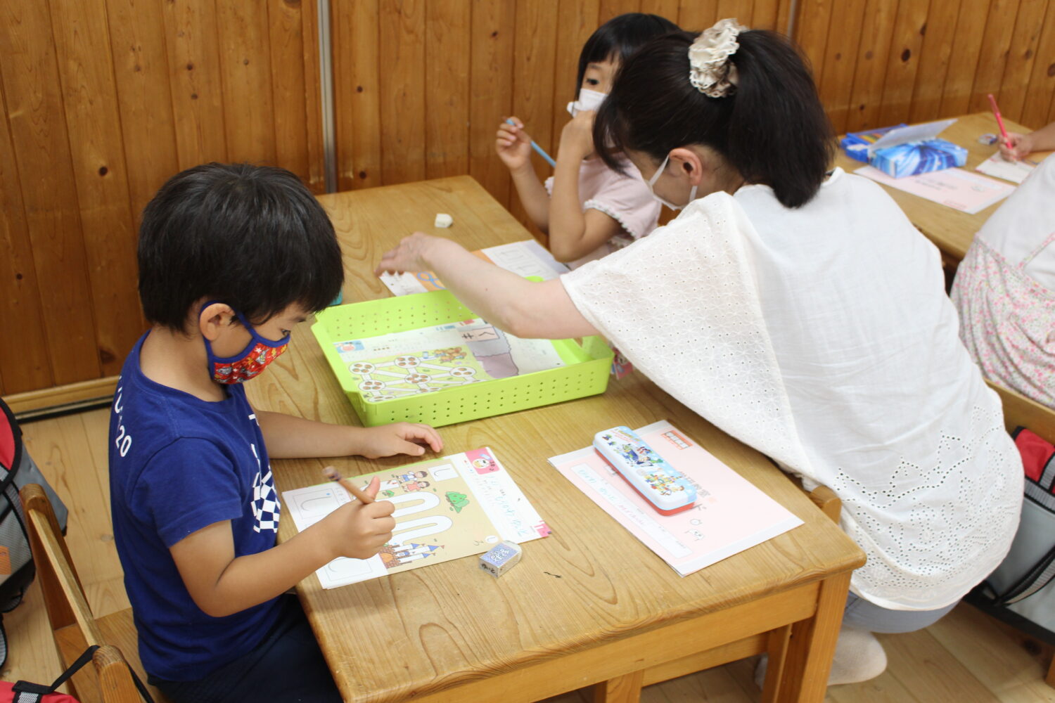 みもざ保育園では、平日の習い事が難しい環境でも、学研教室の講師が保育園に出向き、保護者のお迎えを待つ時間帯に、保育園の一室で学研教室を受けることができます。